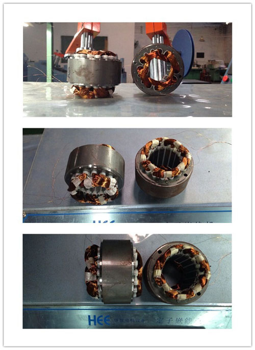 溫州市金勉電機(jī)廠專業(yè)生產(chǎn)直流電機(jī),電容電機(jī),目前全部手工生產(chǎn),但因手工生產(chǎn)造成困境想轉(zhuǎn)型用設(shè)備取代手工,客戶通過在網(wǎng)絡(luò)看到本公司的設(shè)備生產(chǎn)及簡介看中了本公司嵌線專利技術(shù)“高頻振動(dòng)”,及簡單的機(jī)臺(tái),所以遠(yuǎn)從千里之外來到本公司進(jìn)行實(shí)地考察和參觀。第一次到訪時(shí)首先到本公司生產(chǎn)車間觀看嵌線設(shè)備“嵌線機(jī),槽紙機(jī),槽片機(jī),初整形機(jī),扎線機(jī),終整形機(jī)”,初步了解后客戶把自己生產(chǎn)的電機(jī)拿出來,當(dāng)時(shí)本公司總經(jīng)理一看就跟對方建議說以現(xiàn)有的材料來做有難度,主要原因線模太短,會(huì)對后工序加工造成難度,而且非常規(guī)定子,為了讓客戶看到自己的產(chǎn)品生產(chǎn)出來的效果,本公司建議新開套模具出來做試驗(yàn),通過試驗(yàn)客戶對電機(jī)性能進(jìn)行測試,于9月中旬與本公司簽定合同。