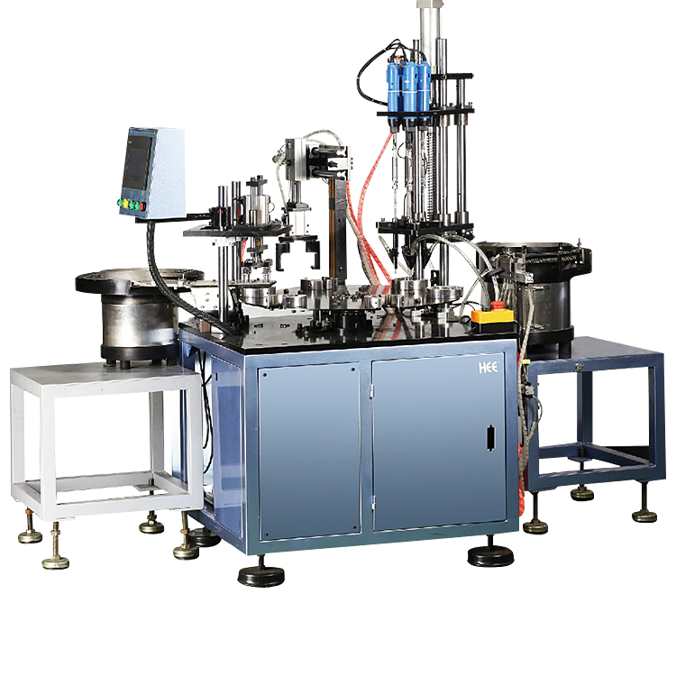 通過多工位實現(xiàn)連續(xù)循環(huán)流水作業(yè),實現(xiàn)放產(chǎn)品、鎖螺絲、檢測、放螺母、卸料同步進行;