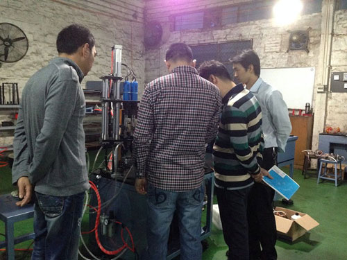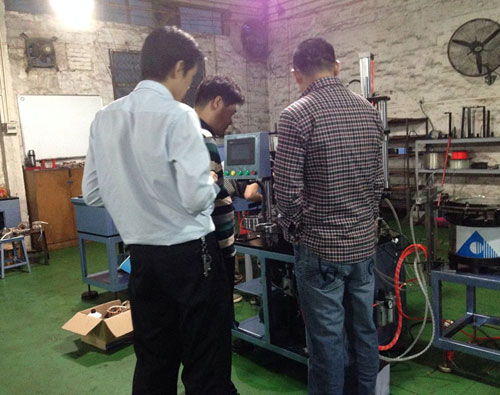 松普電器公司總經(jīng)理鄭先生來(lái)到本公司,第一個(gè)要求去的地方并非辦公室或者休息間,而是本公司的設(shè)備測(cè)試車間。而本公司的測(cè)試車間主要負(fù)責(zé)設(shè)備出廠前的測(cè)試和新客戶定子的試驗(yàn),在里面有本公司完整的落線生產(chǎn)線。在現(xiàn)場(chǎng)我們的技術(shù)人員用專業(yè)的操作和本公司設(shè)備的優(yōu)勢(shì)讓鄭先生感到本公司的實(shí)力和真誠(chéng)的服務(wù)。另外鄭先生了解到本公司前身是生產(chǎn)電機(jī),累積的十多年經(jīng)驗(yàn)且總經(jīng)理的技術(shù)與專業(yè),讓其堅(jiān)定了購(gòu)買設(shè)備的決心,為此在參觀后的下午鄭先生與本公司總經(jīng)理簽訂合作關(guān)系,在本公司訂制槽絕緣紙插入機(jī)、槽片機(jī)、嵌線機(jī)、綁線機(jī)、初整形機(jī)和終整形機(jī)。