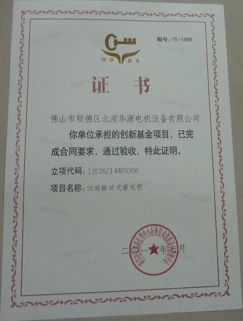 熱烈祝賀我公司《專利技術回旋式振動嵌線機》于2012年7月成功申報國家科技型中小企業(yè)技術創(chuàng)新基金得到立項,立項后本公司全體人員經(jīng)過長期不懈努力。對于創(chuàng)新技術及生產(chǎn)質量我們力求精益求精,抱著沒有最好只有更好的心態(tài),對待每一項技術指標去完善我們的設備。